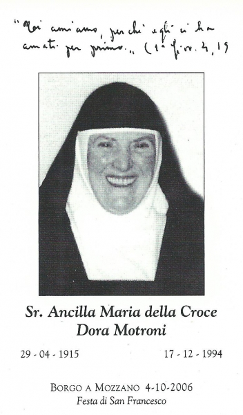 Venti anni fa (il 17 dicembre 1994) moriva nel monastero “Regina Carmeli” di Lucca SUOR ANCILLA MARIA DELLA CROCE, suora borghigiana che vive nel ricordo di tanti che l’hanno conosciuta.