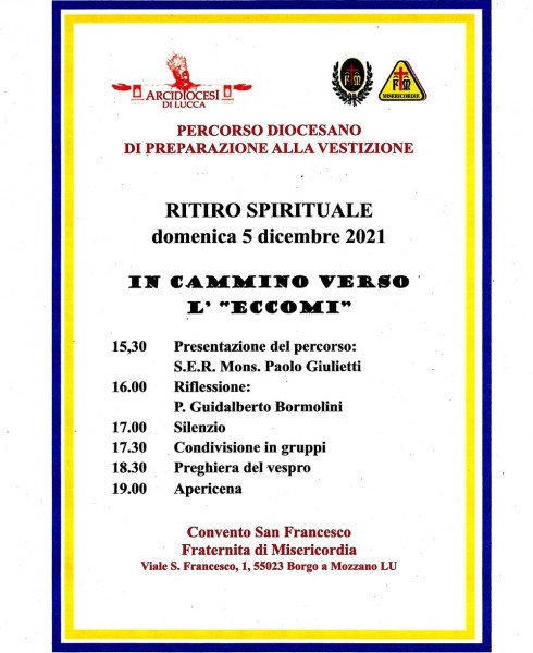 La giornata, organizzata dall’Arcidiocesi di Lucca e dalla Misericordia di Borgo a Mozzano, è inserita all’interno del PERCORSO DIOCESANO DI PREPARAZIONE ALLA VESTIZIONE.
